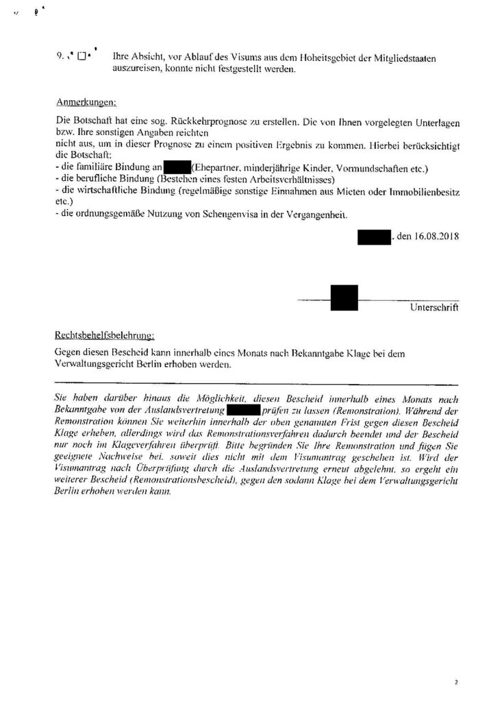 The best way to further exemplify the problem is to use an authentic document from a 2018 German Schengen Visa procedure (unfortunately the document was only made available in German language):